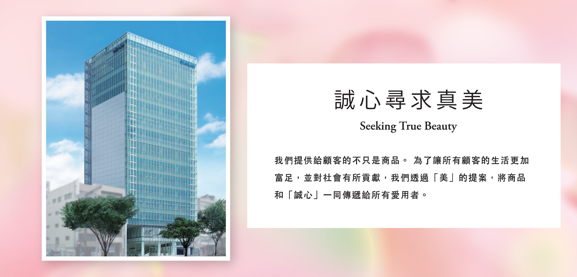 為了所有顧客的生活更加富足,對社會有所貢獻,透過「美」的提案,將商品和「誠心」一同傳遞。