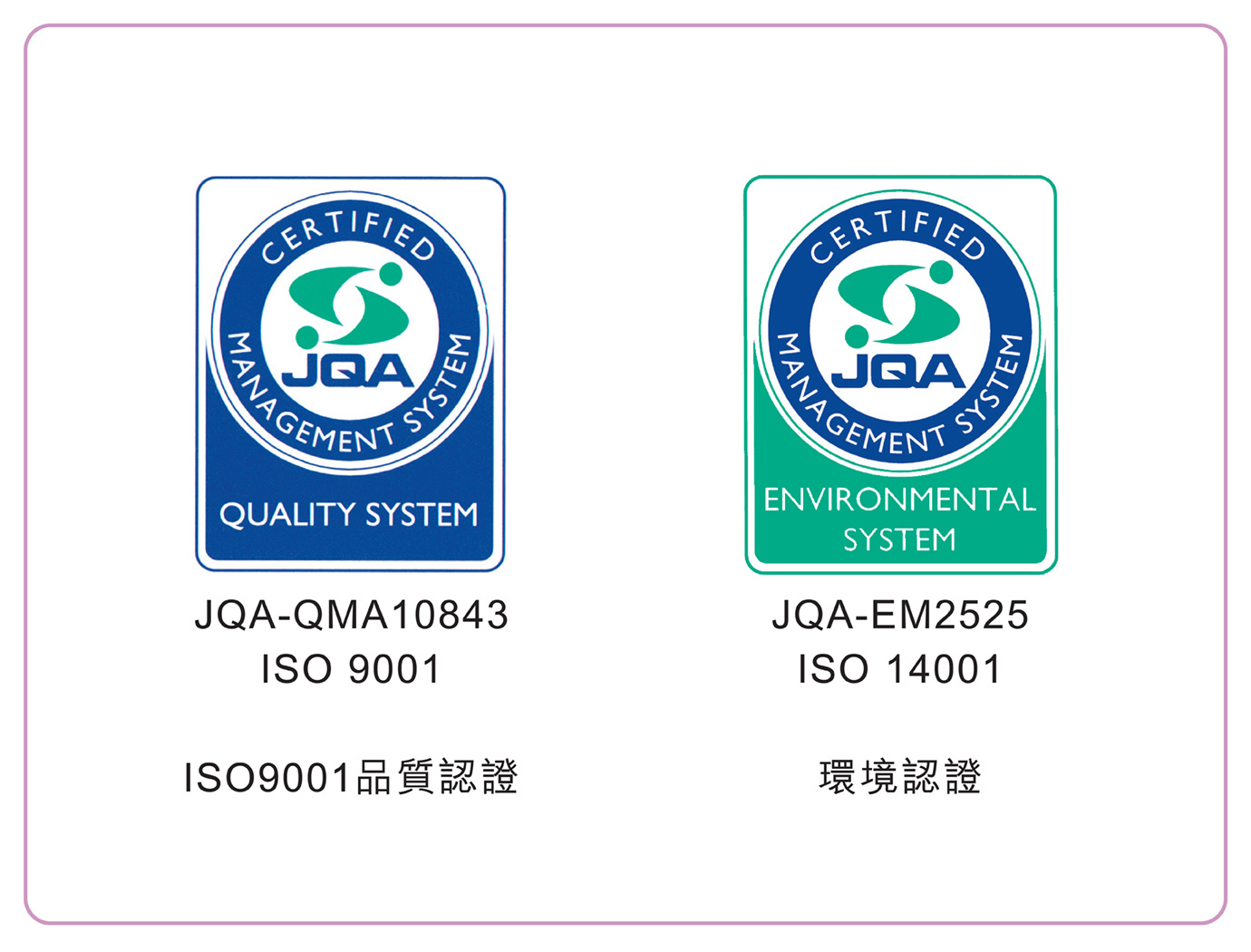 日本MENARD在稻澤工廠以先進的品質管理系統及生產設備「ISO9001品質認證」,